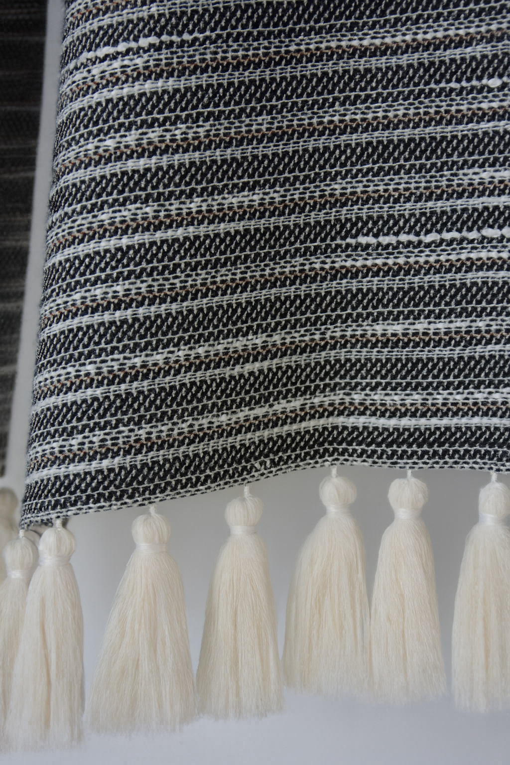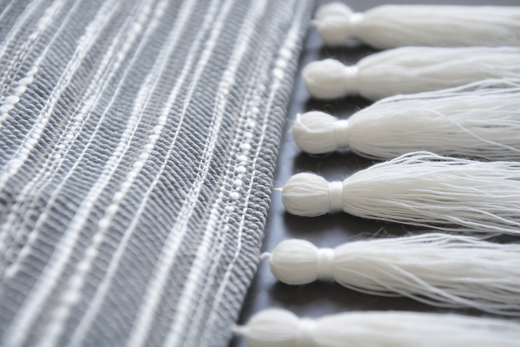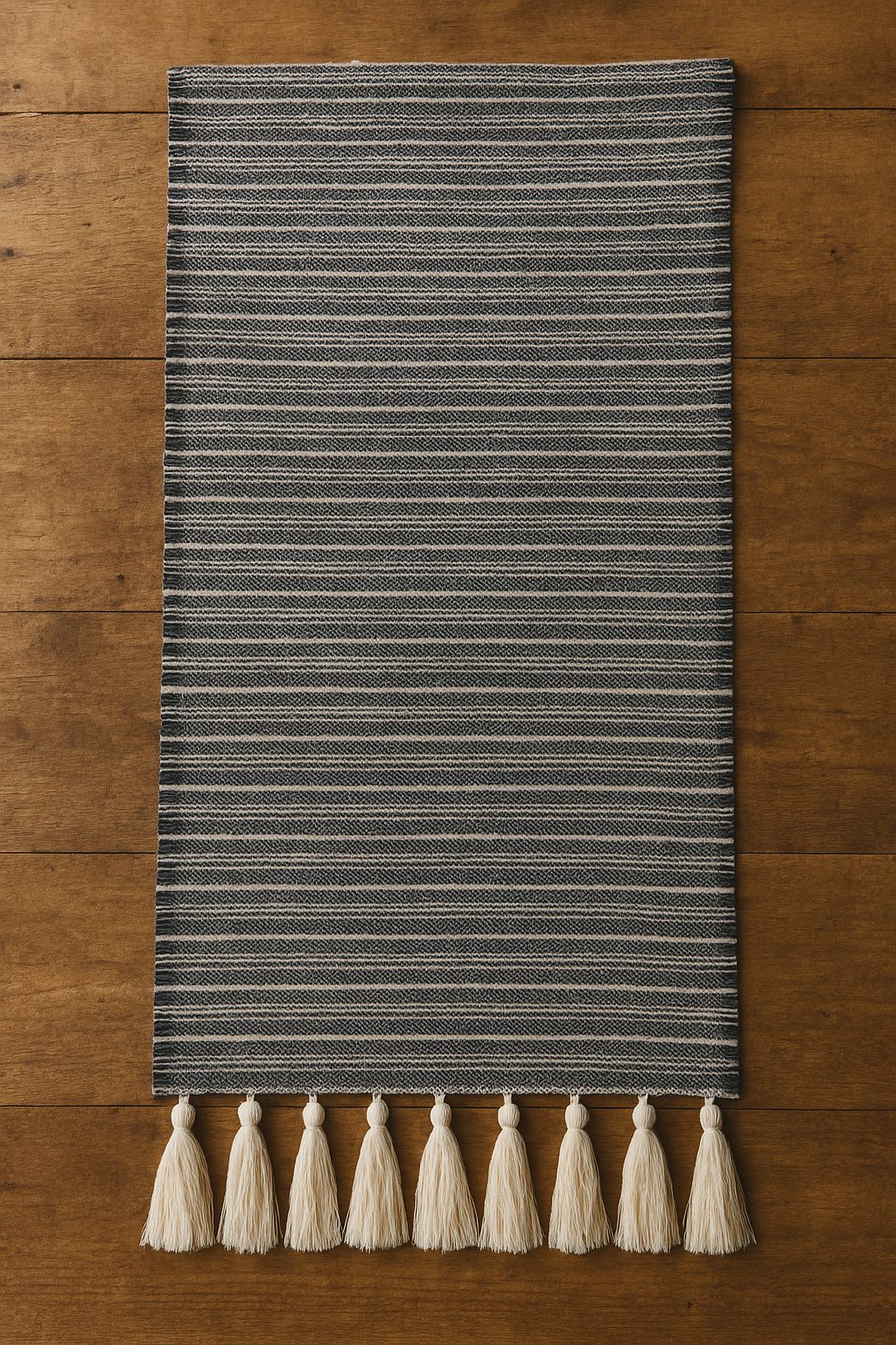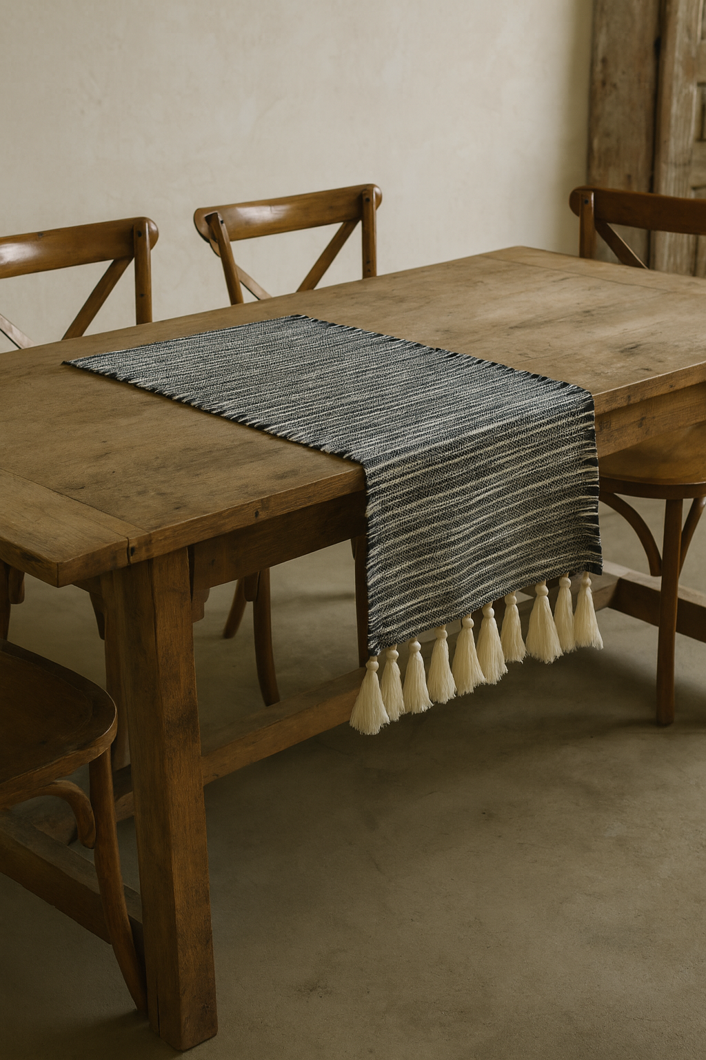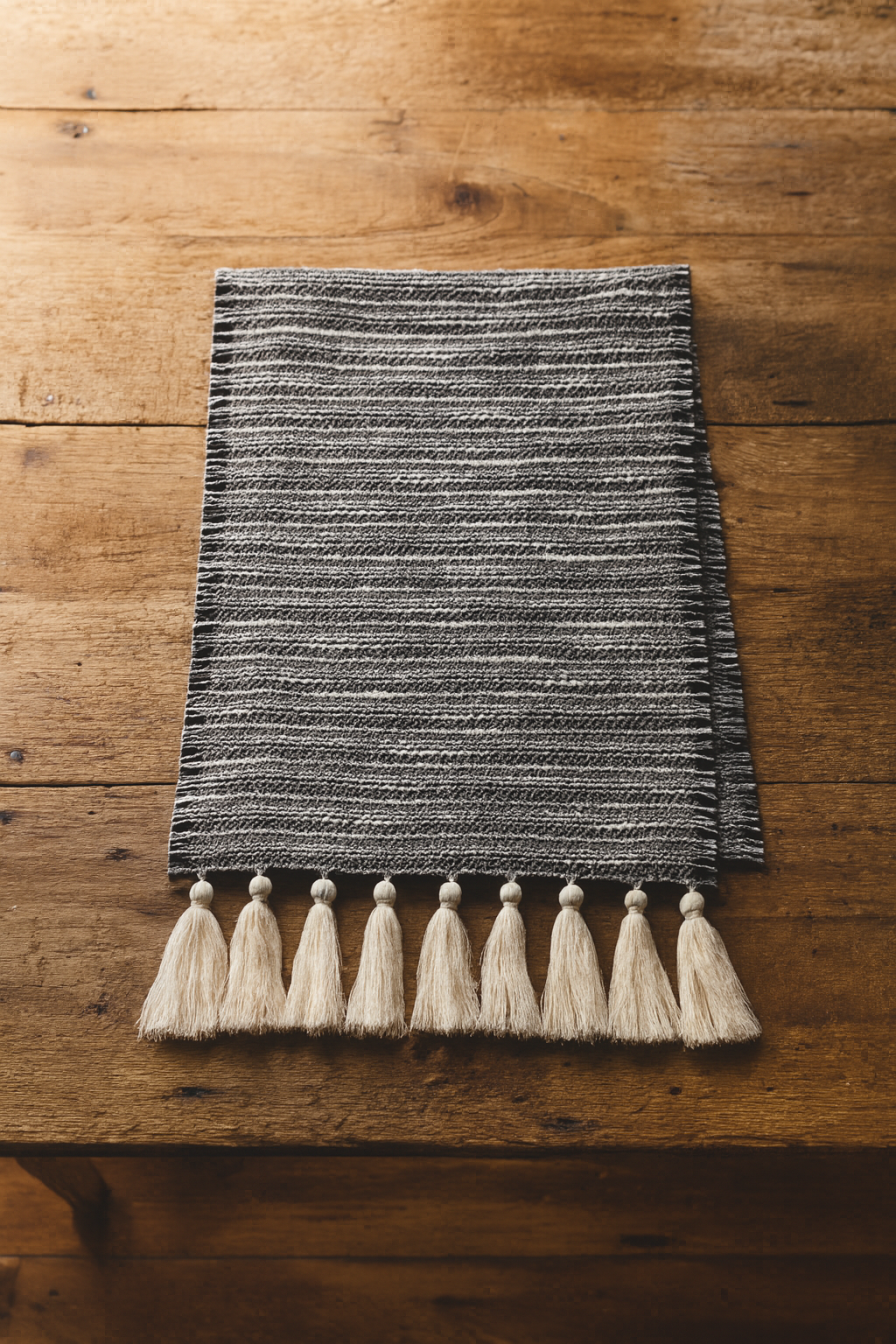 Grey Linen Table Runner with Tassels | Rustic Farmhouse Dining Table Decor | 35cm x 200cm